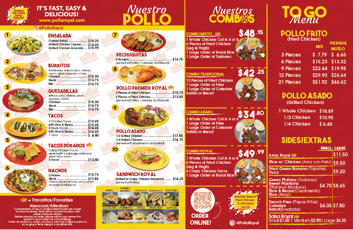Your taste buds will rejoice with every bite of their renowned broiled chicken and delectable fried plantains. Pollo Royal not only excels in flavor but also offers incredible value for money, making it a must-visit for anyone craving quality Spanish cuisine.
